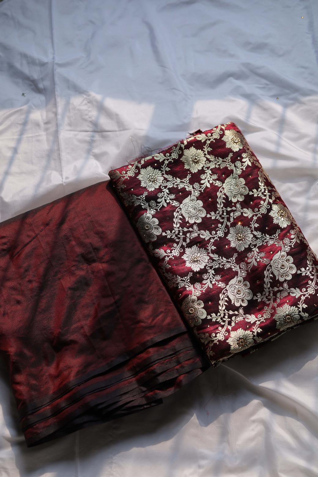 - Ironing: If ironing is necessary, use a low heat setting and place a cloth between the iron and the garment to protect the fabric and zari work.