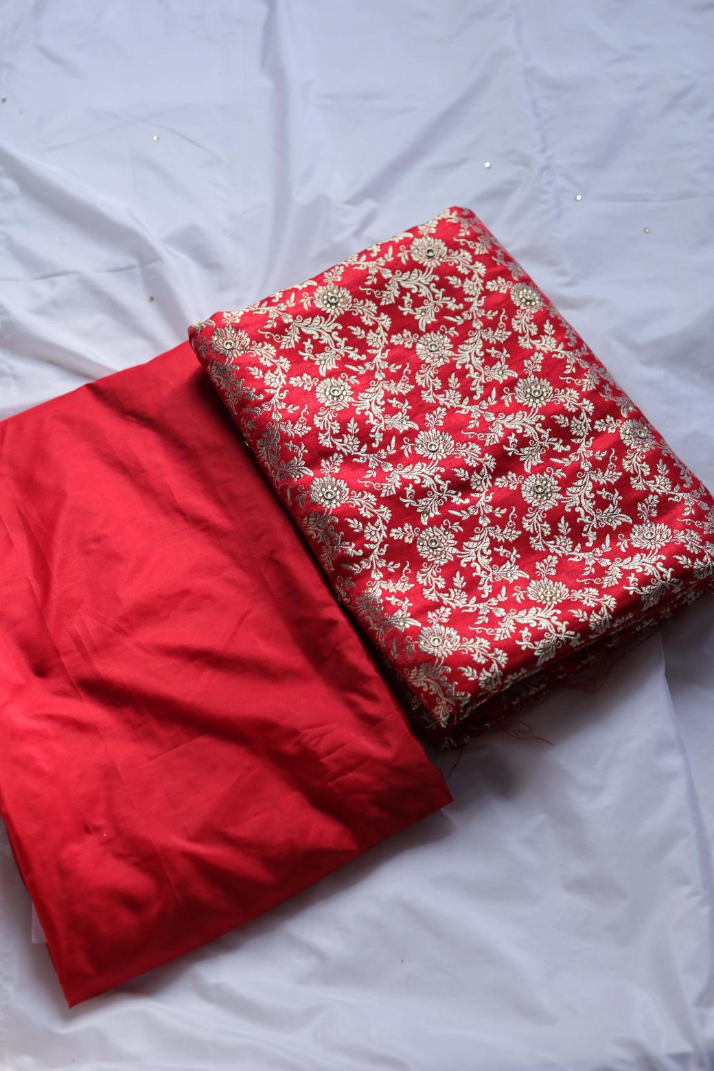 The Red and Golden Pure Contrast Kimkhab Banarasi Gharara. Made from high-quality silk and this gharara is perfect for any formal occasion. The beautiful Banarasi design adds a touch of elegance and sophistication to your wardrobe.