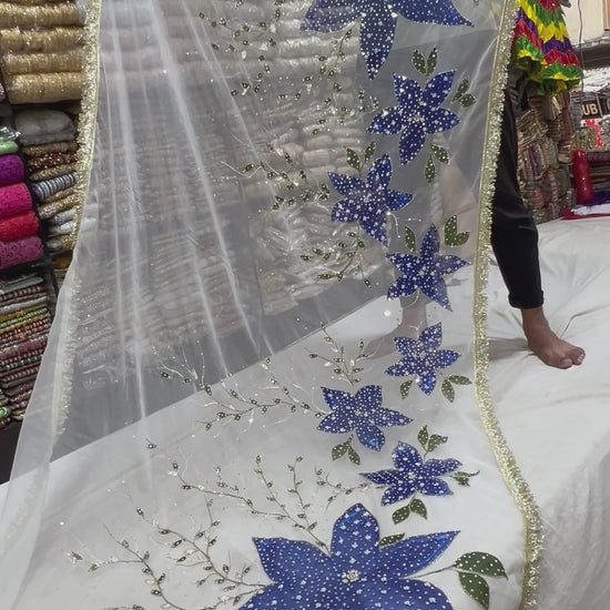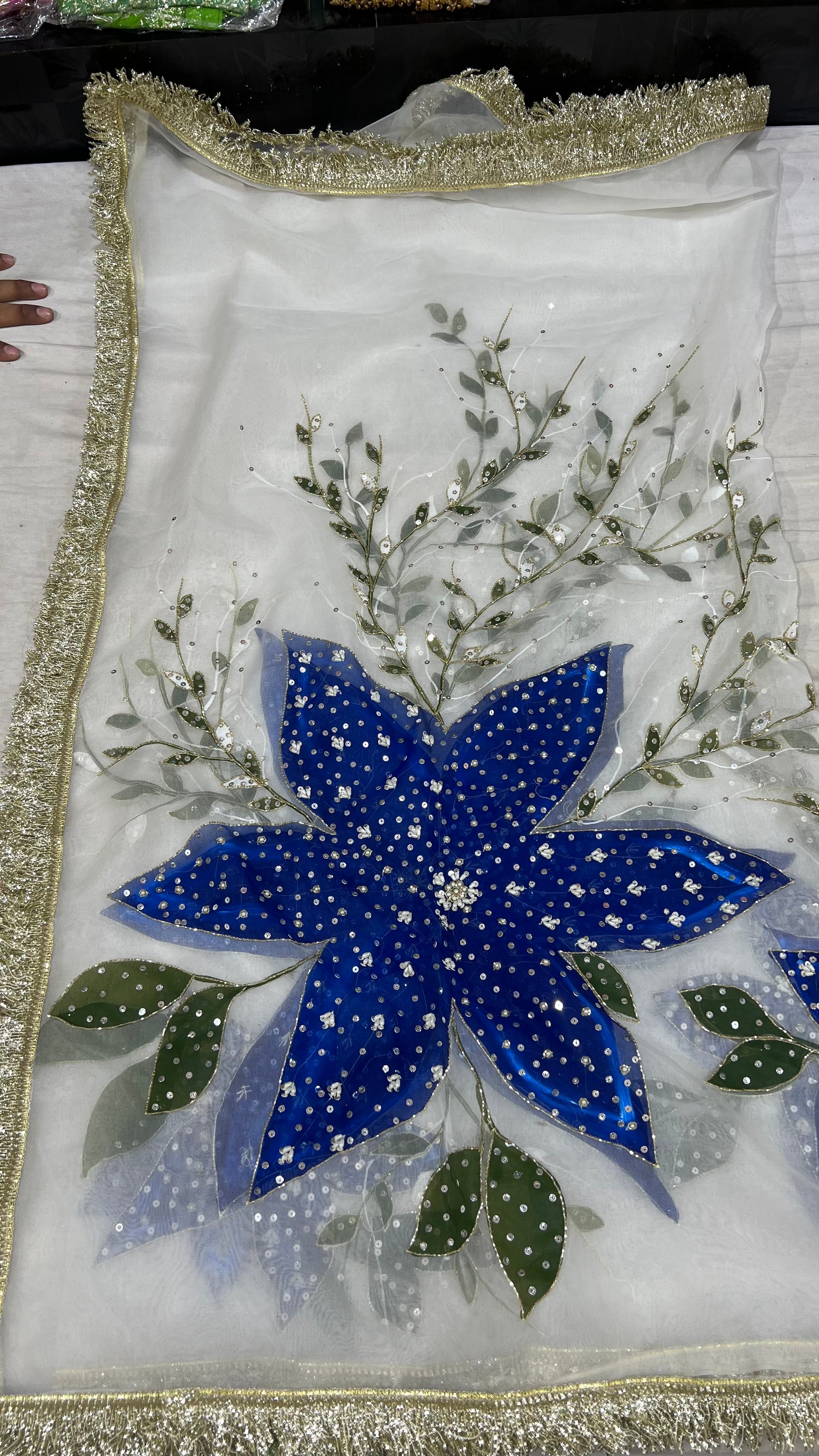 Hand-Painted Floral Dupatta with Handwork Detailing